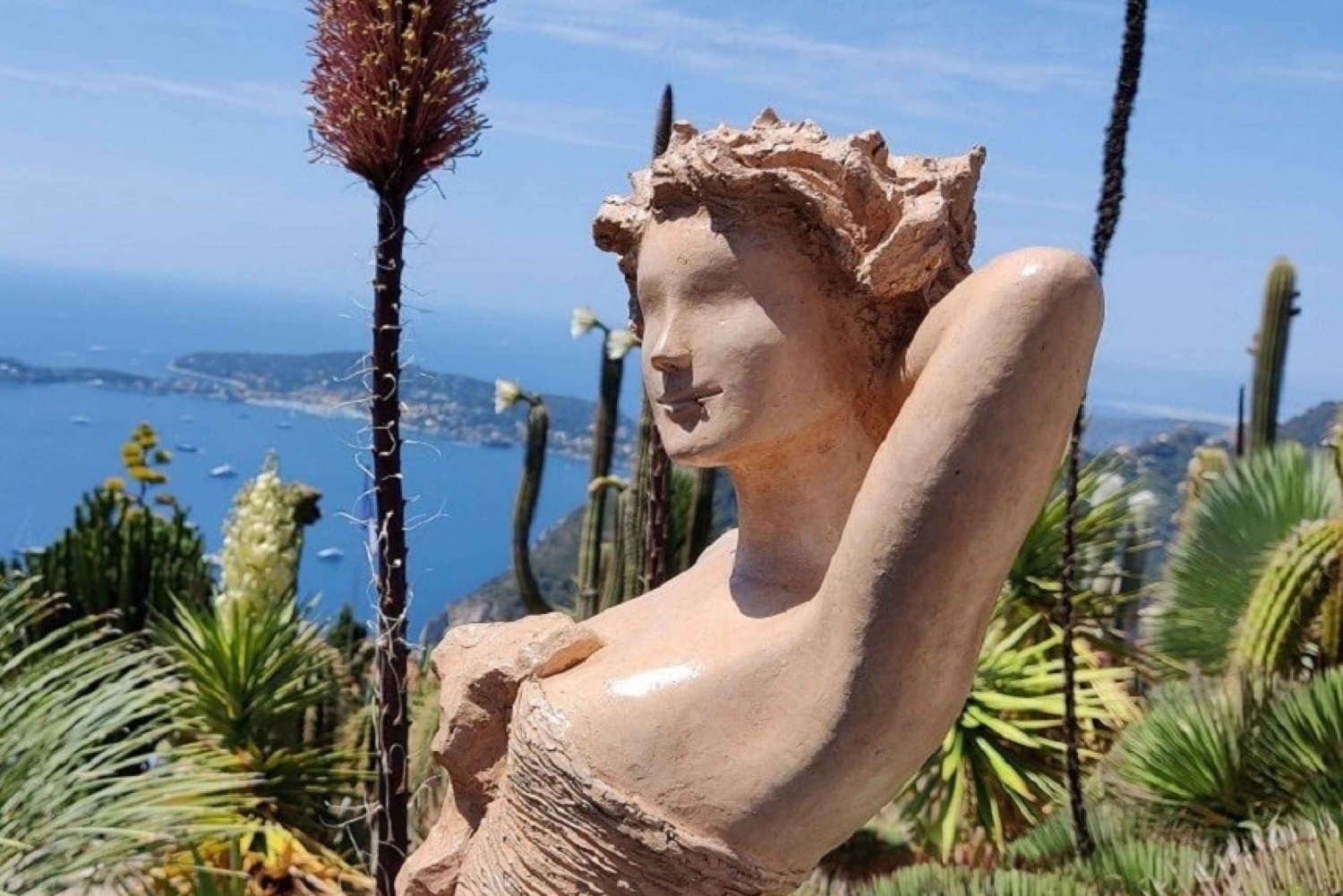 Du vil opdage den eksotiske have, som huser mere end 100 arter af saftige planter og kaktusser samt kvindeskulpturer af sten. Fra toppen af haven har du en fantastisk udsigt over landsbyen og havet. Beundr også ruinerne af middelalderslottet, som vidner om Èzes turbulente fortid.